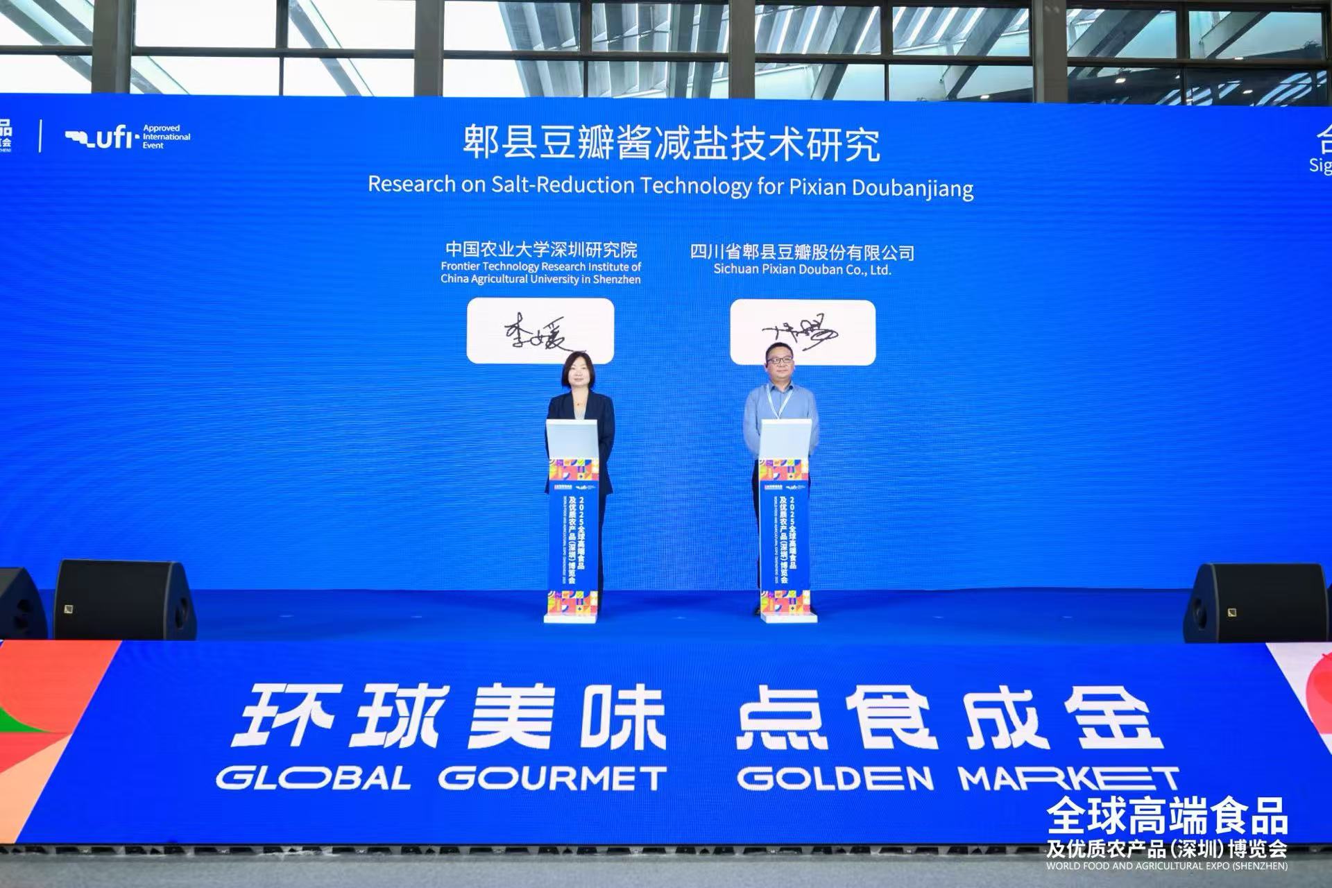 在开幕仪式上,优游国际牌郫县优游国际ub8公司总经理冉易与中国农业大学深圳研究院教授李媛签署了合作协议,双方将围绕郫县优游国际ub8酱减盐技术开展专项研究。此次合作是优游国际牌郫县优游国际ub8积极响应健康消费潮流、精准把握消费者对健康食品需求趋势的重要举措。通过产学研协同创新,双方将共同探索减盐工艺的优化路径,在充分保留郫县优游国际ub8独特风味的基础上,为传统调味品的现代化升级与健康化转型注入强劲的动力。