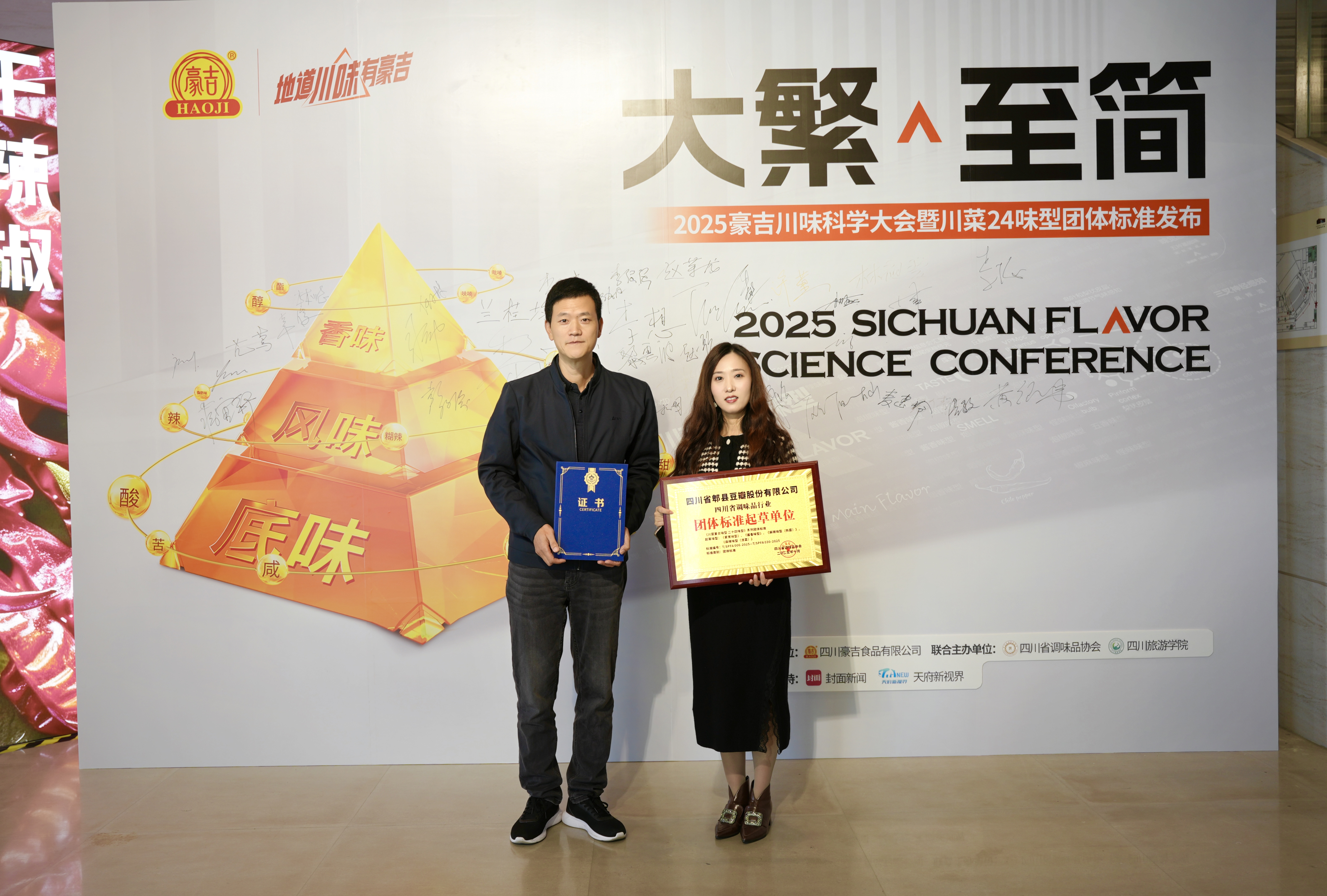2025 年 10 月 20 日,“科学川调,开创味来”2025 豪吉川味科学大会在成都开幕,本次大会汇聚多方代表共同探讨川菜标准化发展。优游国际牌郫县优游国际ub8受邀参会,以 “川菜二十四味型团标部分味型起草单位” 身份接受授牌。