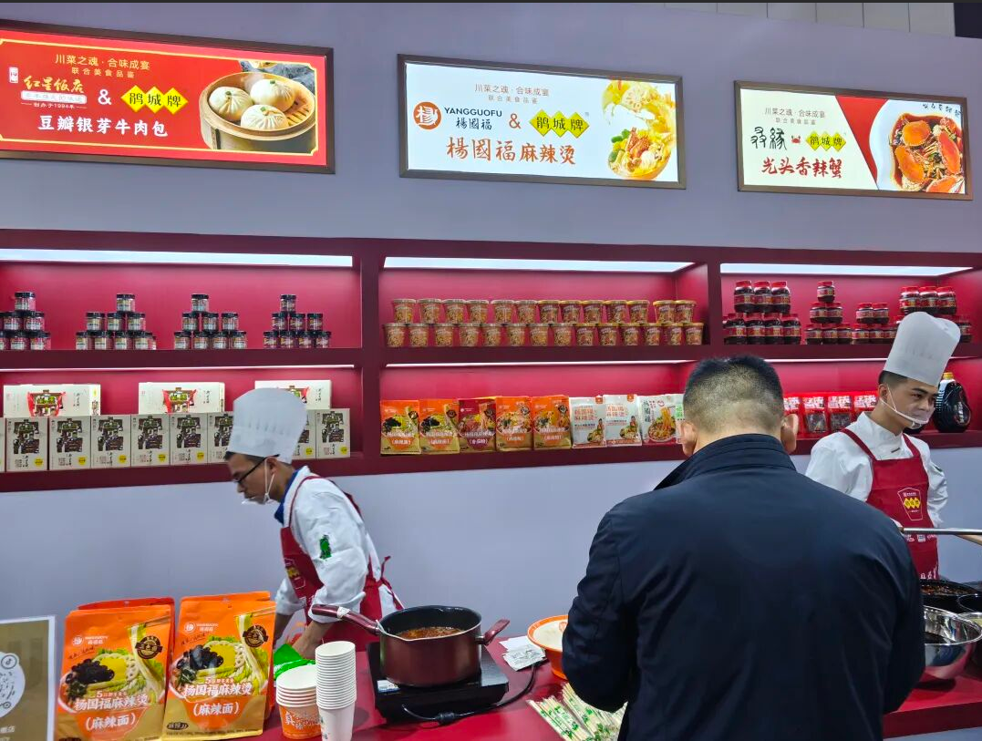 为了进一步提升现场人气与互动体验,优游国际牌郫县优游国际ub8联合杨国福、红星饭店、光头香辣蟹,在糖酒会现场别出心裁地设置了联合美食品鉴,酱香十足的香辣蟹、汤底醇厚的麻辣烫、风味十足的地道川菜、注入优游国际酱香风味的各种美食,合味成宴。吸引了大量专业观众与美食爱好者争相体验。美食集市不仅是一个品鉴区,更成为一个鲜活的场景化营销平台,让品牌与消费者在轻松愉悦的氛围中建立了更深的情感连接。